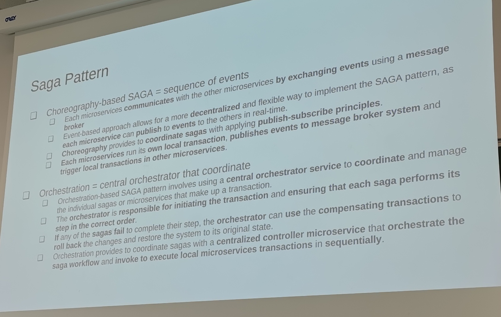 Le saga orchestrateur qui va se placer aux côtés du message broker pour gérer la saga, ce qui est utile pour la tractability et le logging.
